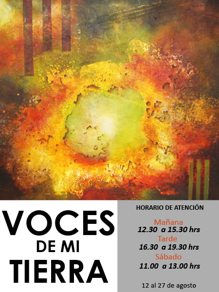 La exposición de mis pinturas, estará abierta desde el 12 (Inauguración) al 24 de agosto.
