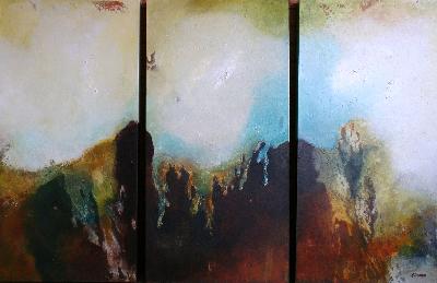 Vendida "El Centro del Universo" 0.40 x 0.80 (tríptico) | Técnica Mixta - Acrílico |